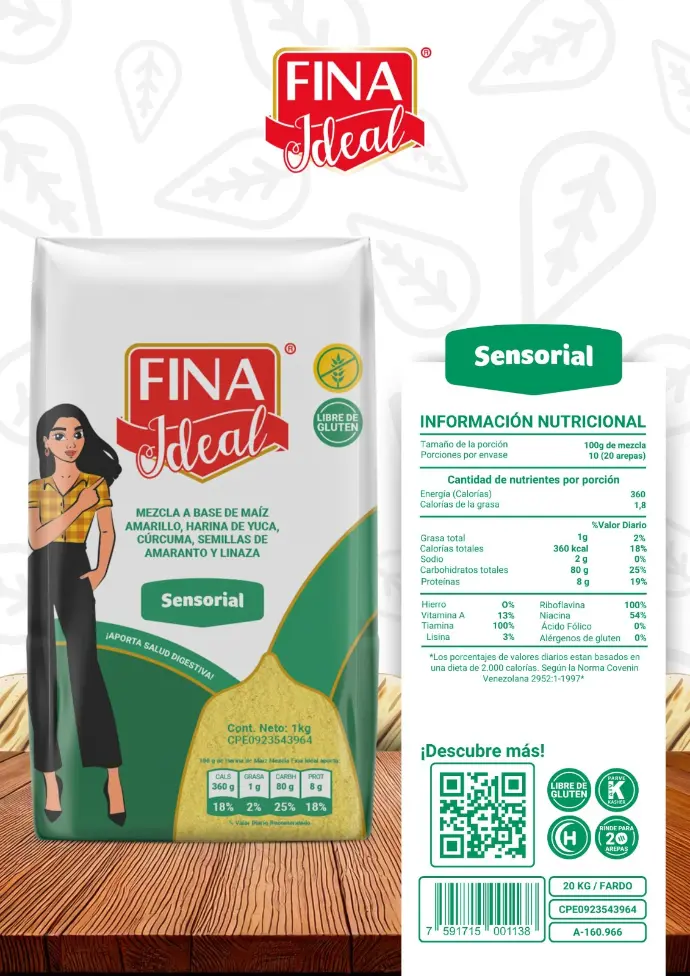 Creemos en la importancia de disfrutar de la comida tanto desde el punto de vista nutricional como desde el "sensorial", y esta harina es el resultado de este enfoque holístico. Nuestra mezcla a base de maíz amarillo es una creación única y revolucionaria, diseñada para ofrecer una experiencia culinaria que estimula todos los sentidos.